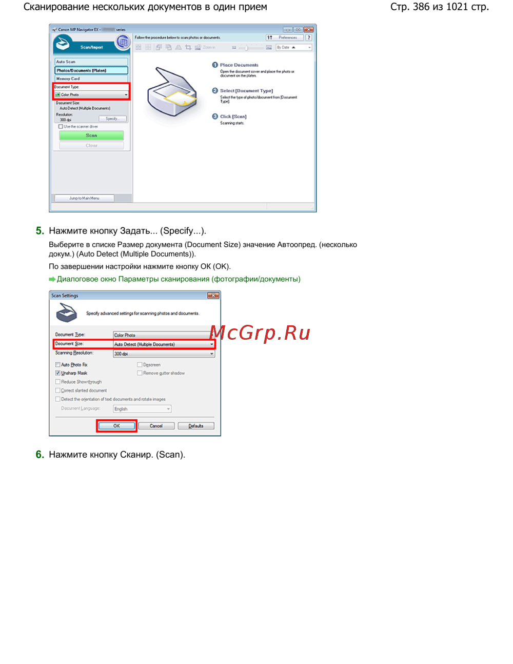 Стр. 386 из 1021 стр.Сканирование нескольких документов в один прием