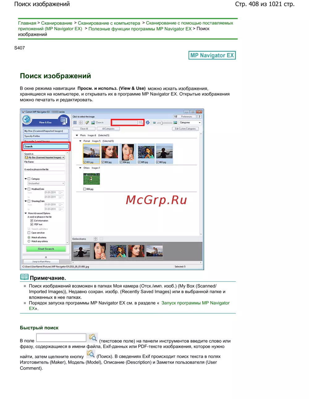 хранящиеся на компьютере, и открывать их в программе MP Navigator EX. Открытые изображения