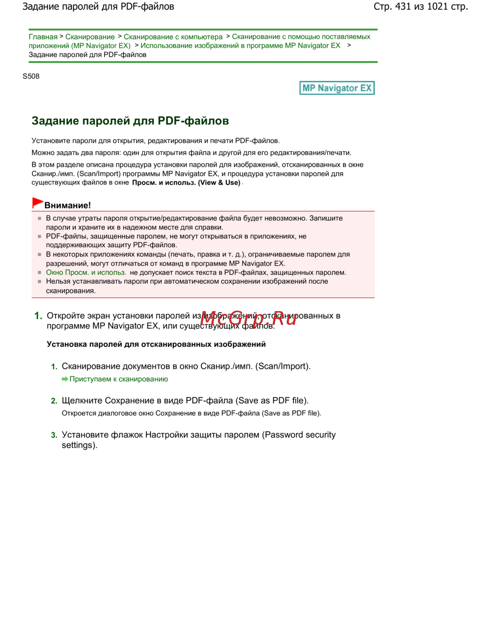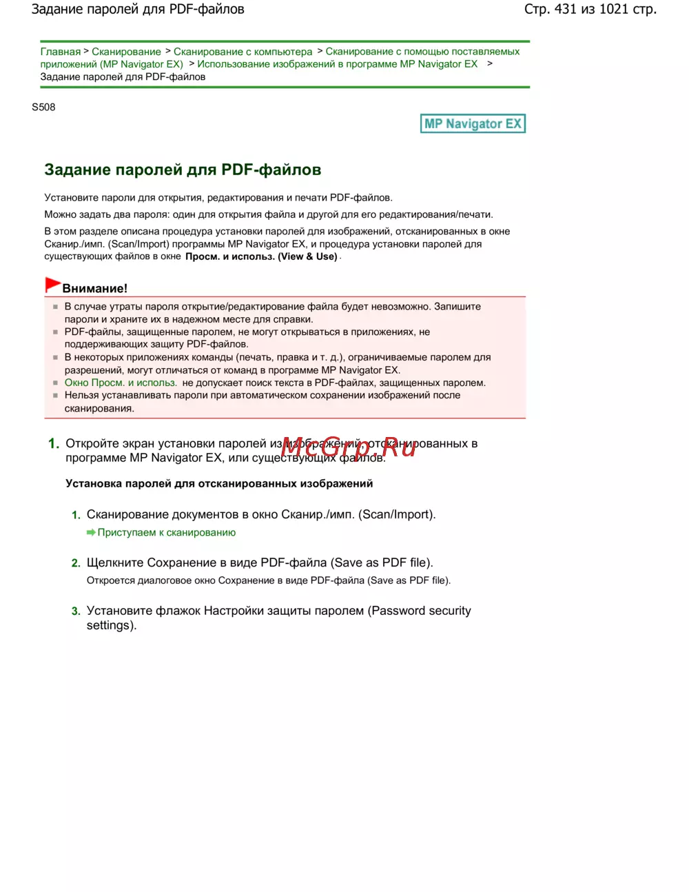 Canon Pixma MG4140 [431/1021] Стр 431 из 1021 стр задание паролей для pdf файлов