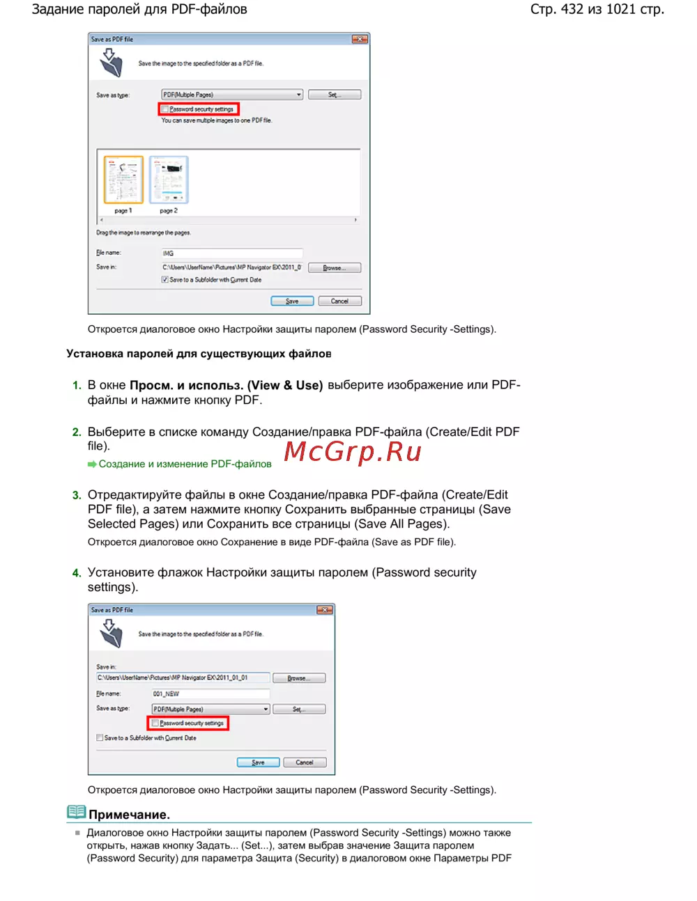 Canon Pixma MG4140 [432/1021] Стр 432 из 1021 стр задание паролей для pdf файлов