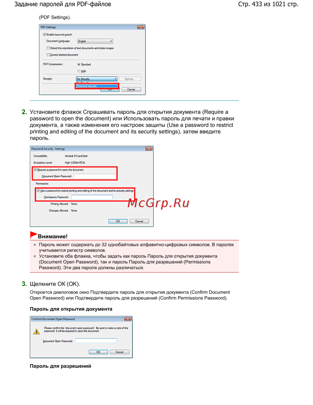 Стр. 433 из 1021 стр.Задание паролей для PDF-файлов