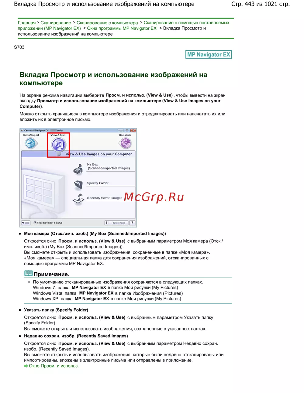 Стр. 443 из 1021 стр.Вкладка Просмотр и использование изображений на компьютере