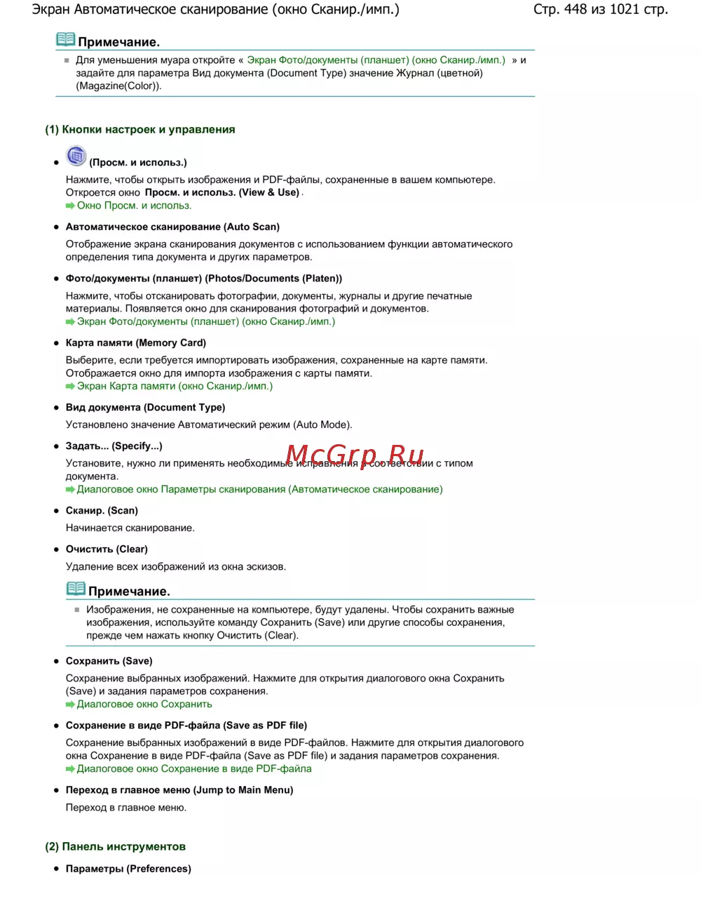 Стр. 448 из 1021 стр.Экран Автоматическое сканирование (окно Сканир./имп.)