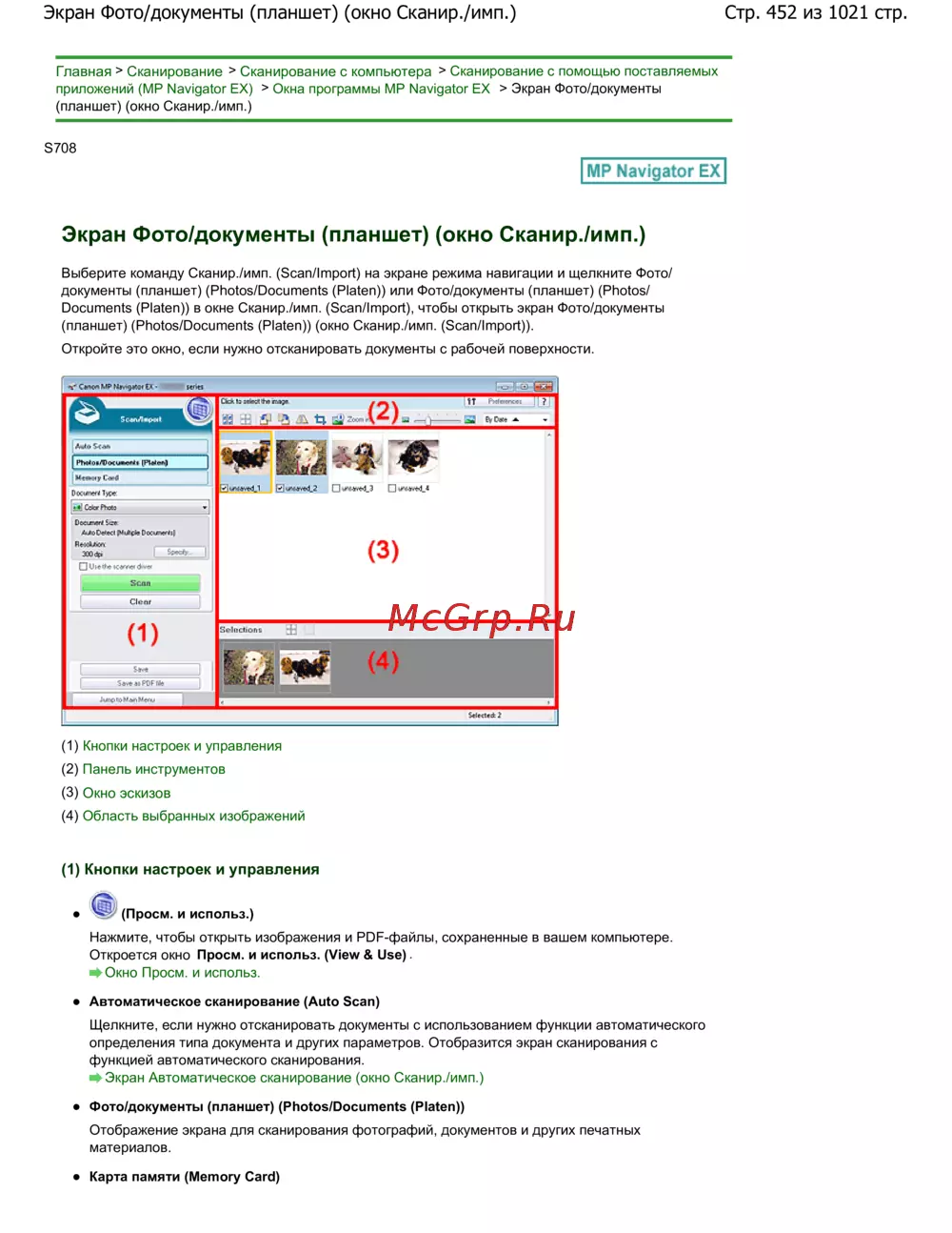 Стр. 452 из 1021 стр.Экран Фото/документы (планшет) (окно Сканир./имп.)