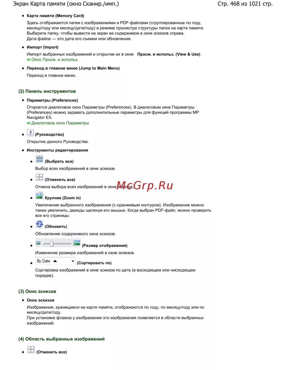Стр. 468 из 1021 стр.Экран Карта памяти (окно Сканир./имп.)