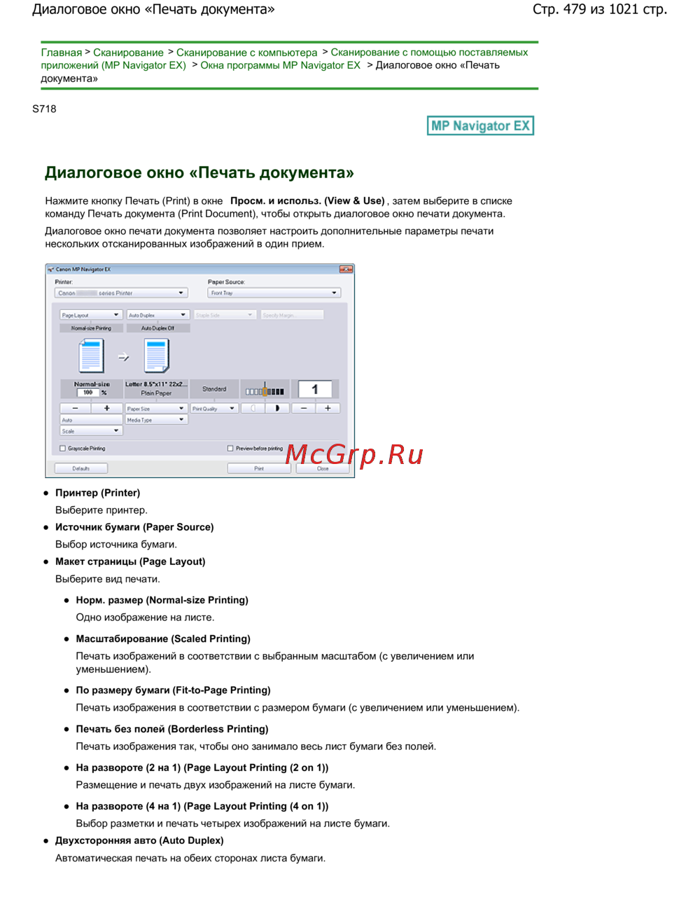 Стр. 479 из 1021 стр.Диалоговое окно «Печать документа»