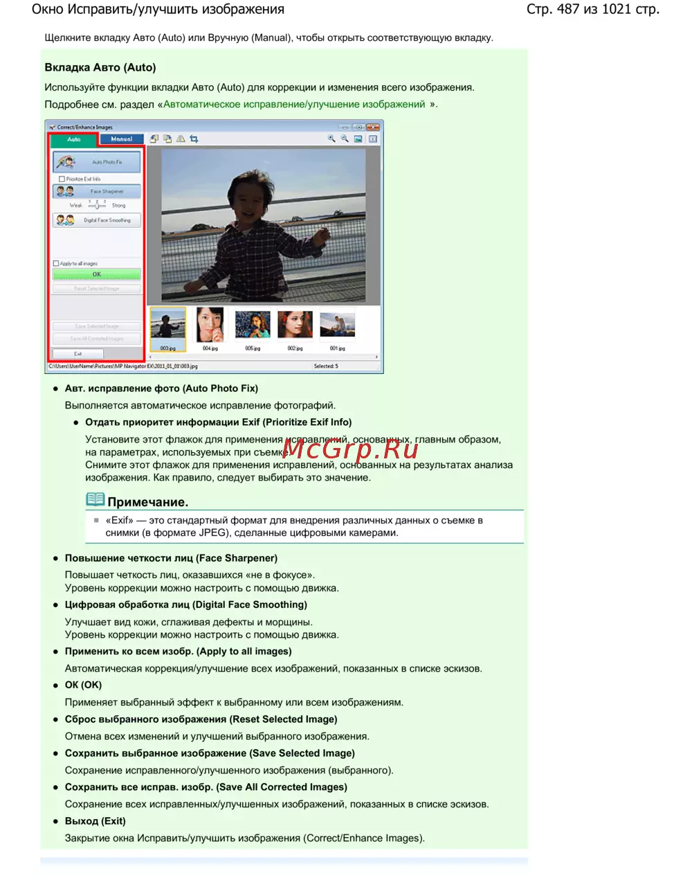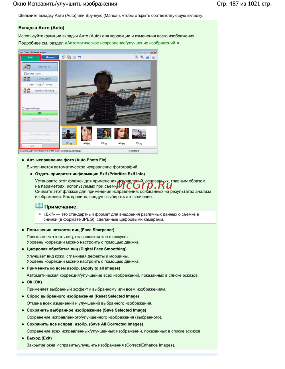 Стр. 487 из 1021 стр.Окно Исправить/улучшить изображения