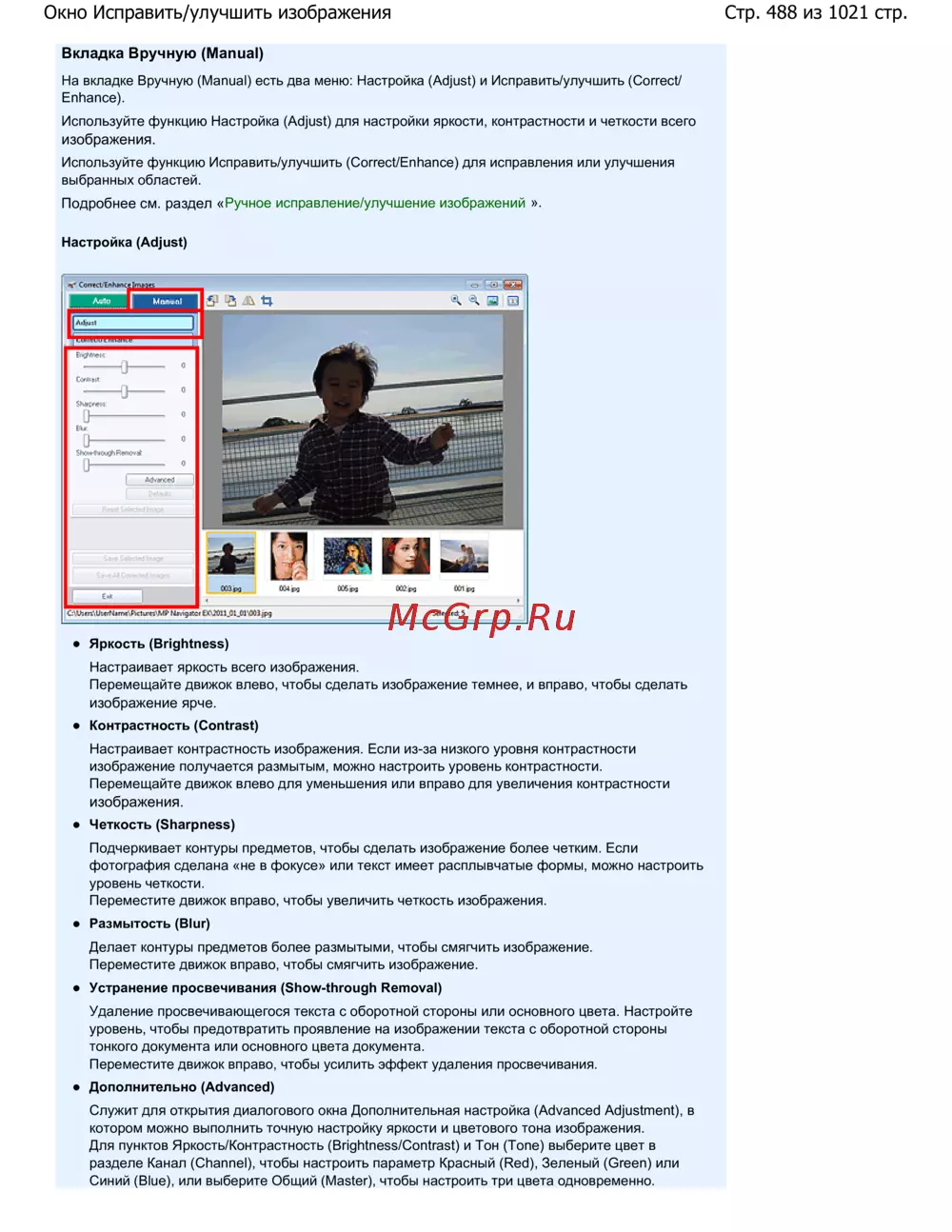 Стр. 488 из 1021 стр.Окно Исправить/улучшить изображения