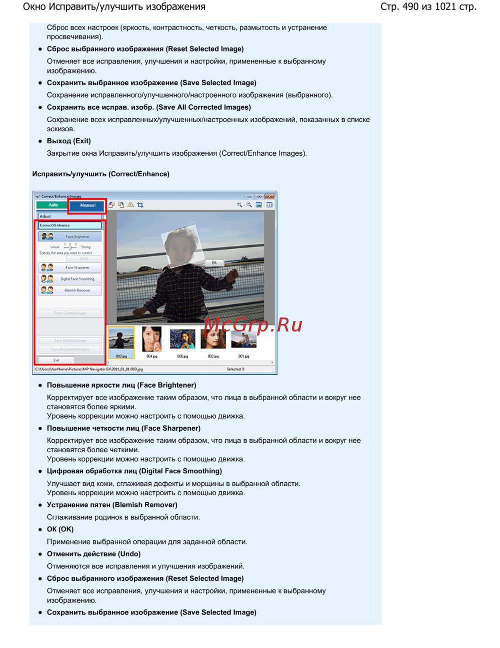 Стр. 490 из 1021 стр.Окно Исправить/улучшить изображения