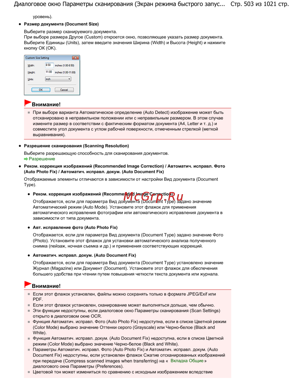 Стр. 503 из 1021 стр.Диалоговое окно Параметры сканирования (Экран режима быстрого запус...
