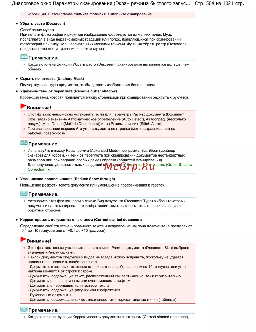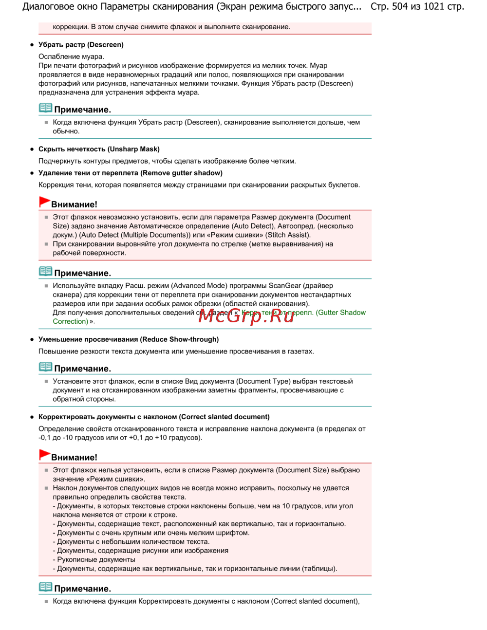 Стр. 504 из 1021 стр.Диалоговое окно Параметры сканирования (Экран режима быстрого запус...