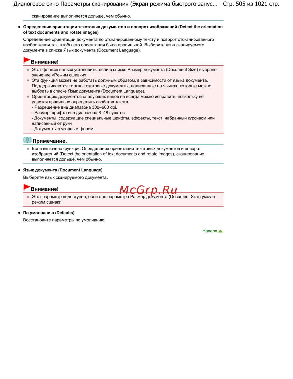 Стр. 505 из 1021 стр.Диалоговое окно Параметры сканирования (Экран режима быстрого запус...