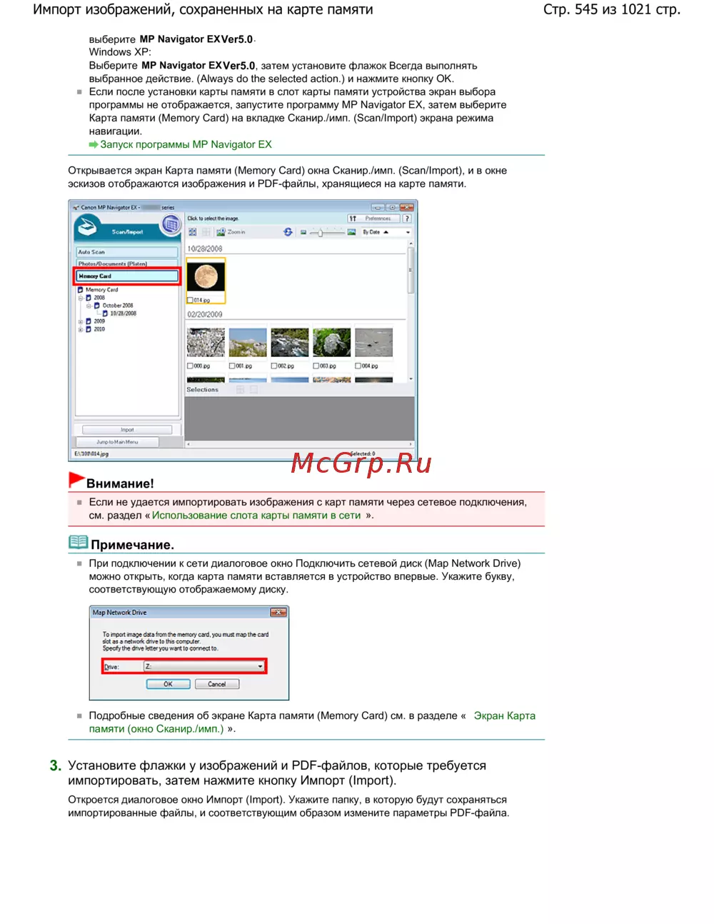 Стр. 545 из 1021 стр.Импорт изображений, сохраненных на карте памяти