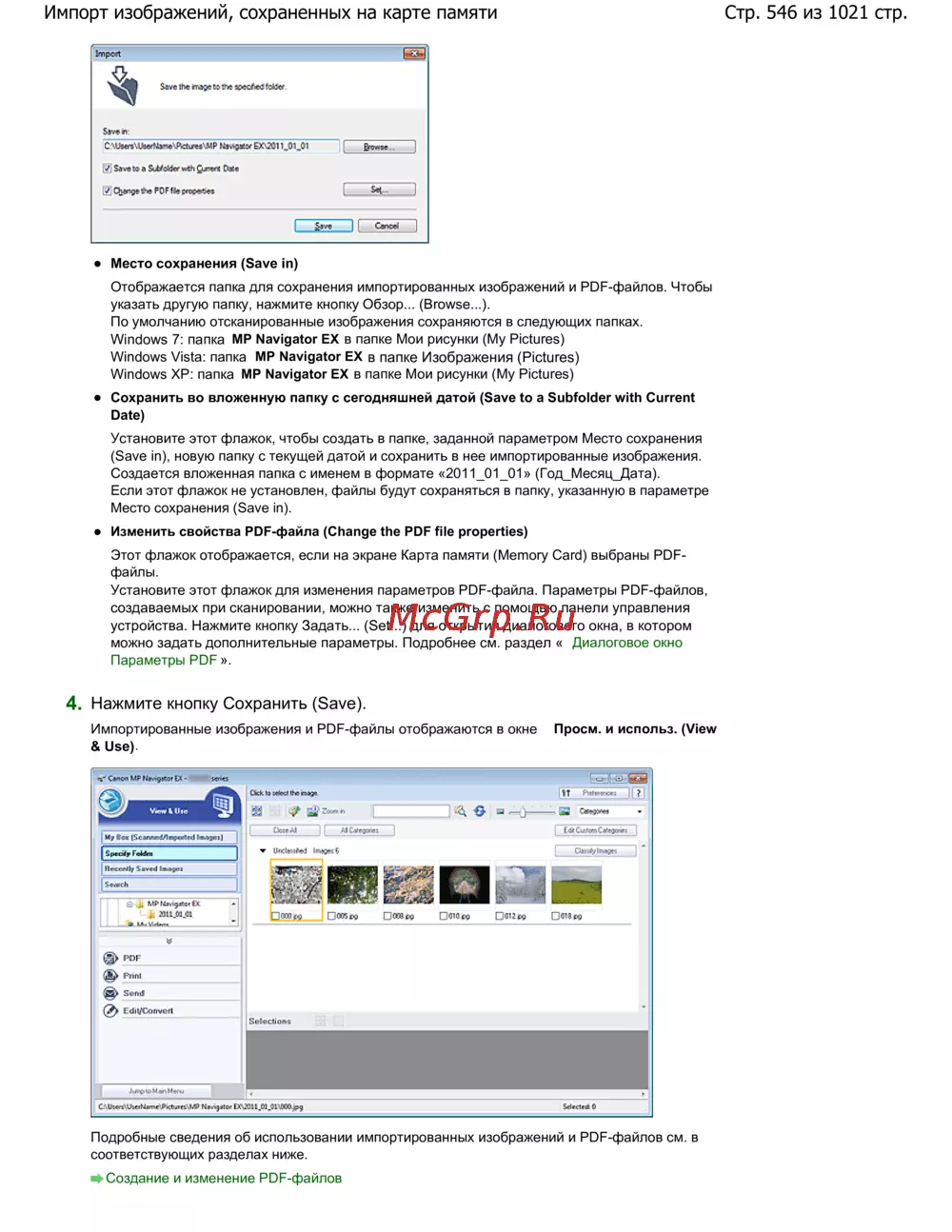 Стр. 546 из 1021 стр.Импорт изображений, сохраненных на карте памяти