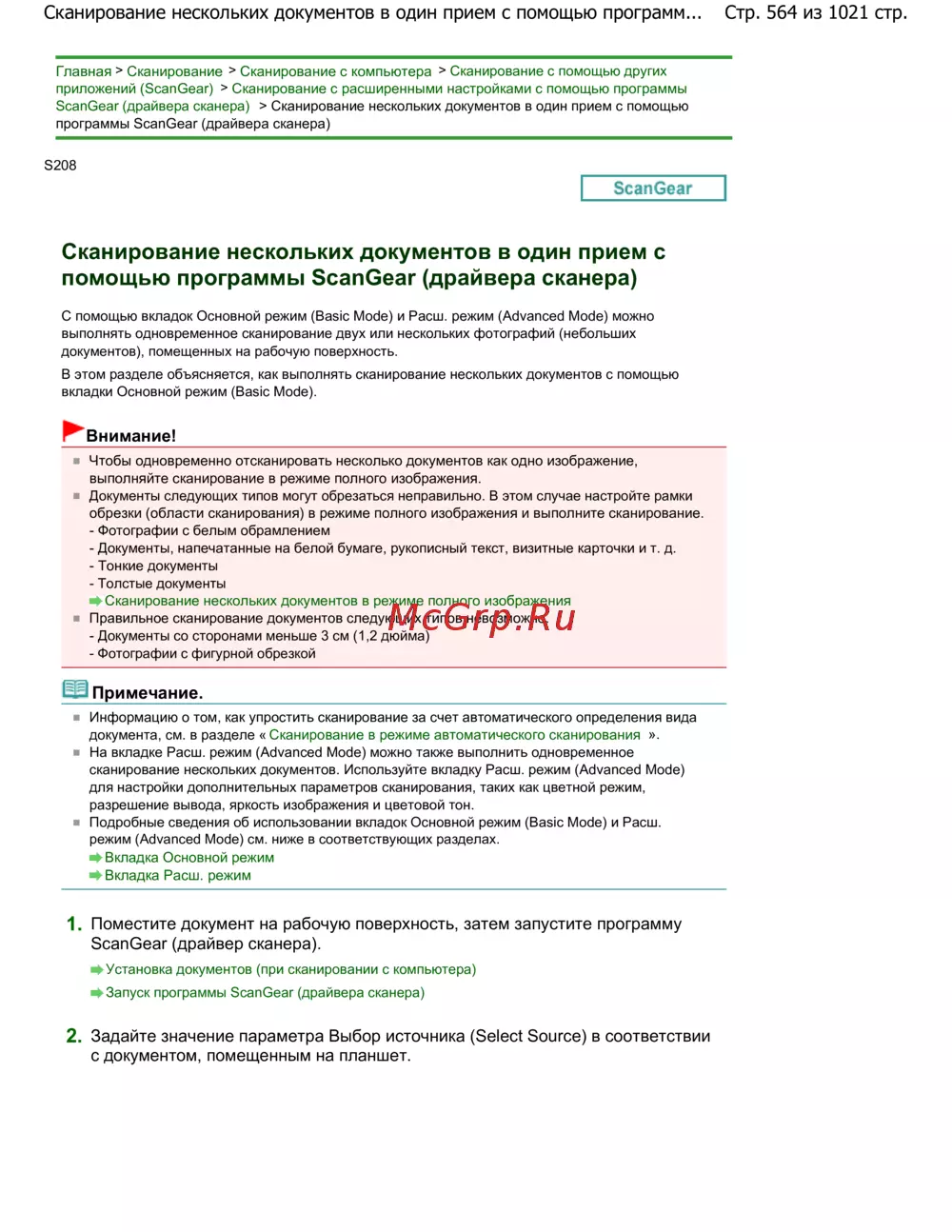Стр. 564 из 1021 стр.Сканирование нескольких документов в один прием с помощью программ...