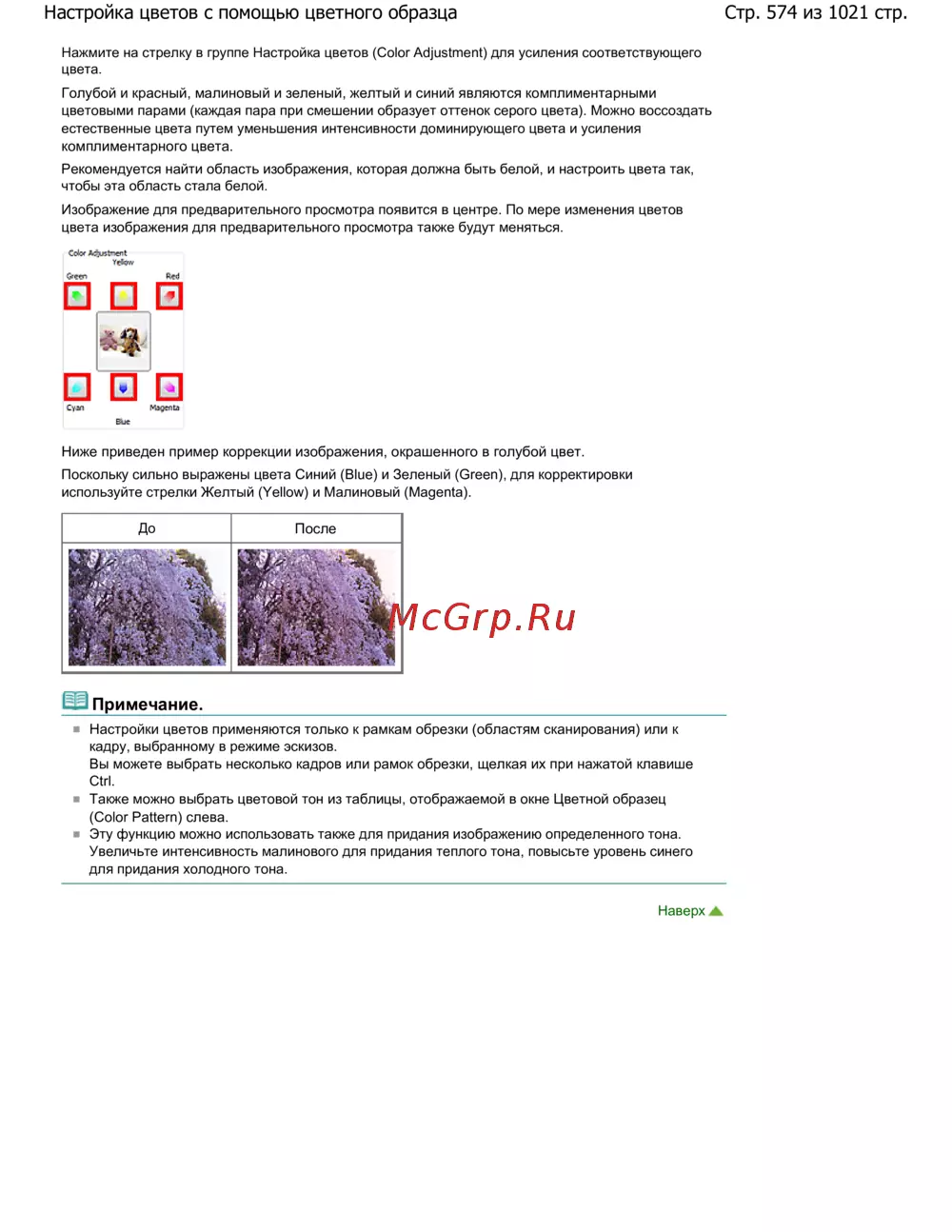 Стр. 574 из 1021 стр.Настройка цветов с помощью цветного образца