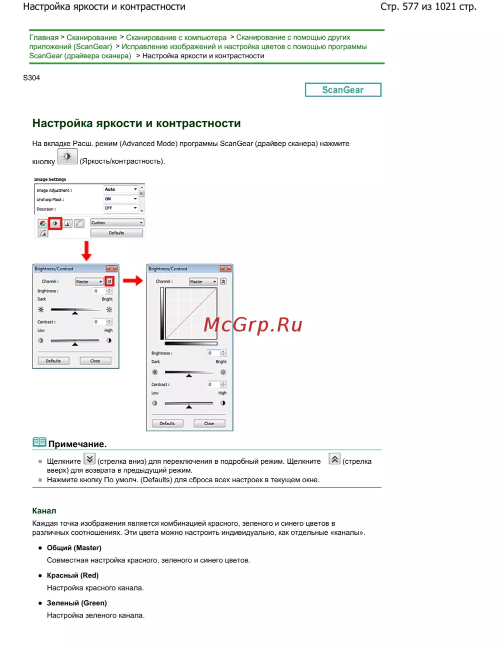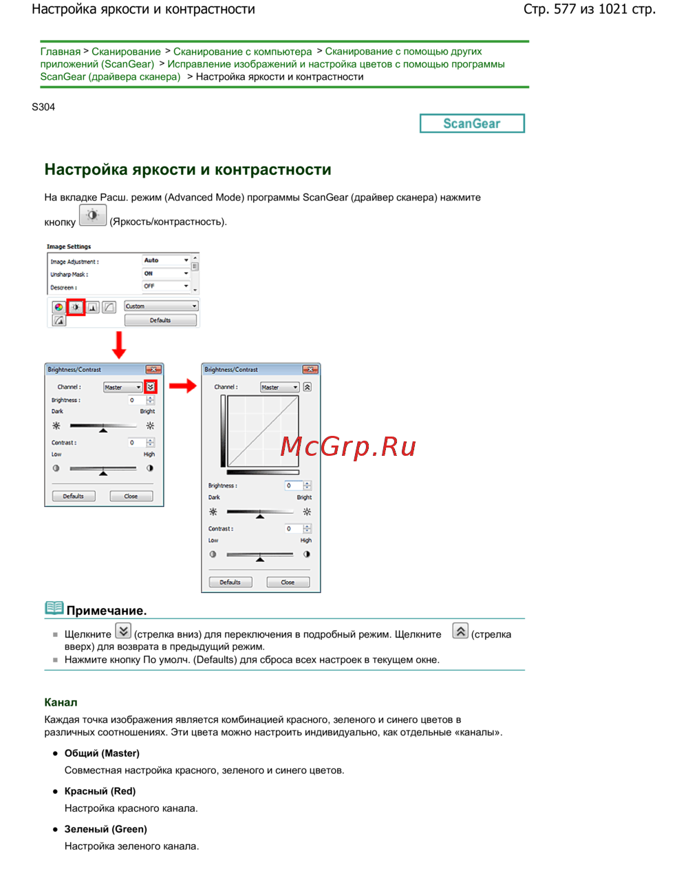 ScanGear (драйвера сканера) > Настройка яркости и контрастности