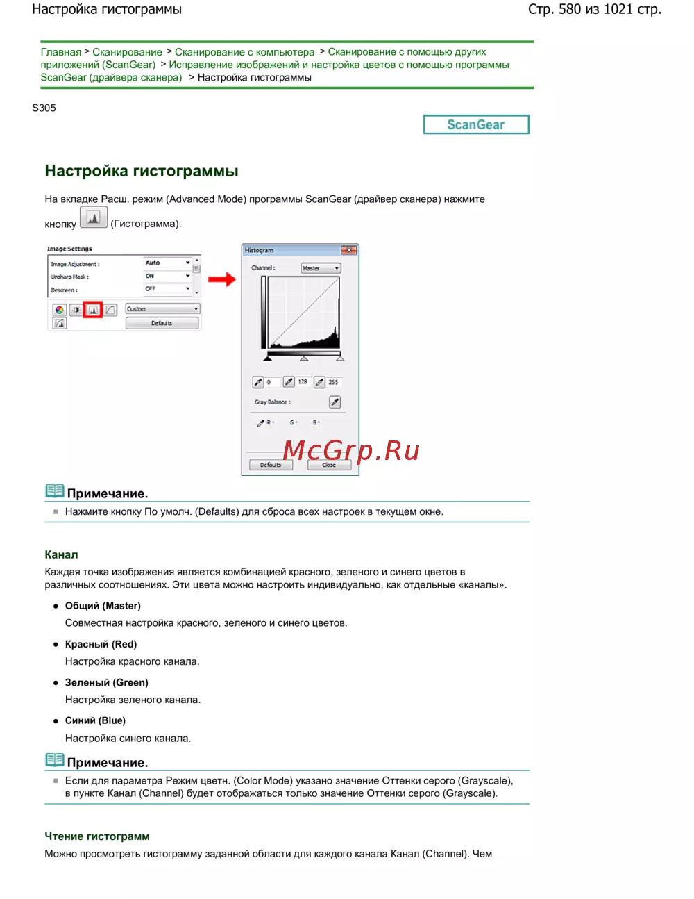 Стр. 580 из 1021 стр.Настройка гистограммы