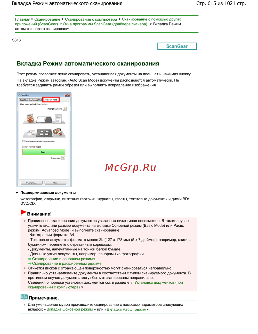 Canon Pixma MG4140 [615/1021] Стр 615 из 1021 стр вкладка режим автоматического сканирования