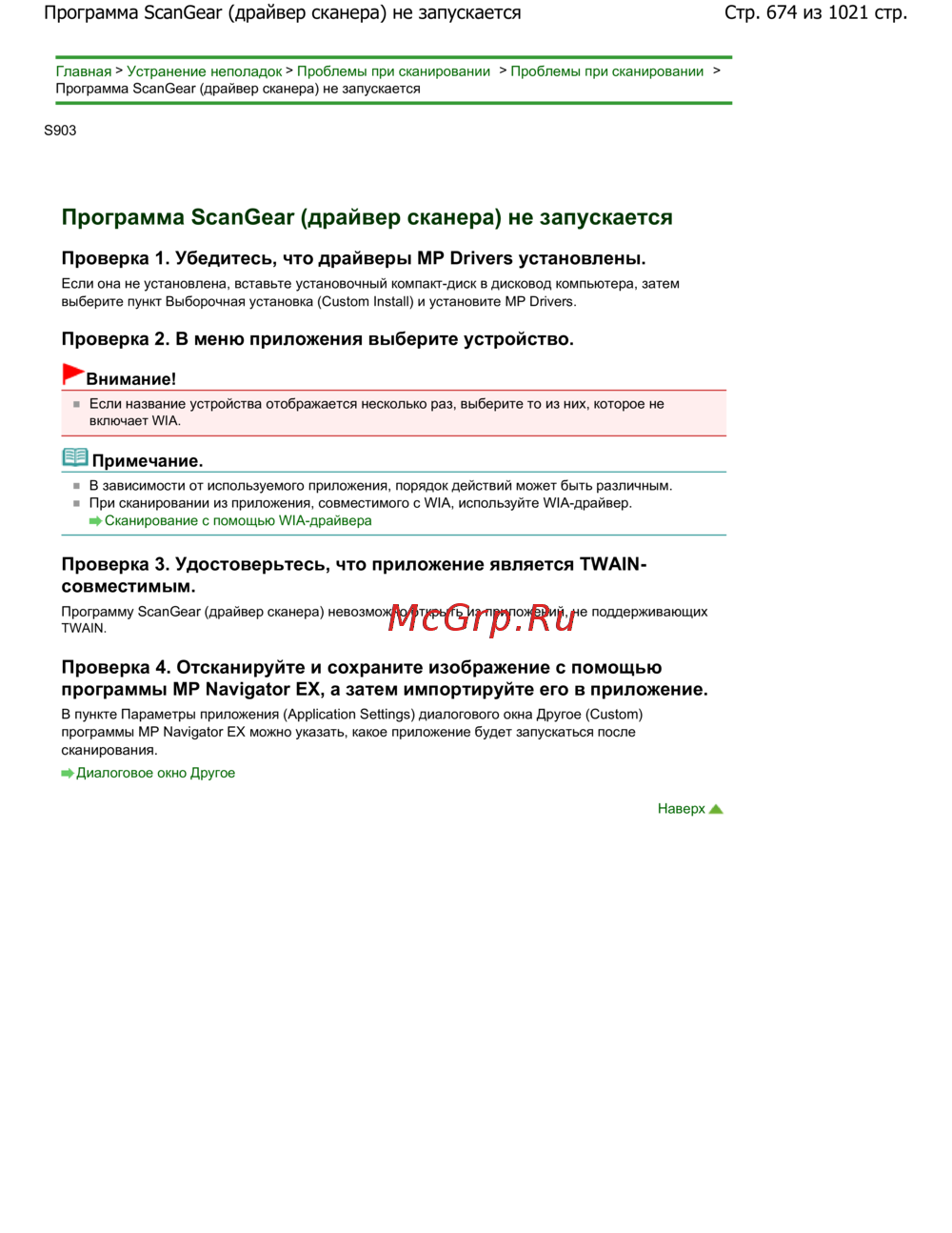 Стр. 674 из 1021 стр.Программа ScanGear (драйвер сканера) не запускается