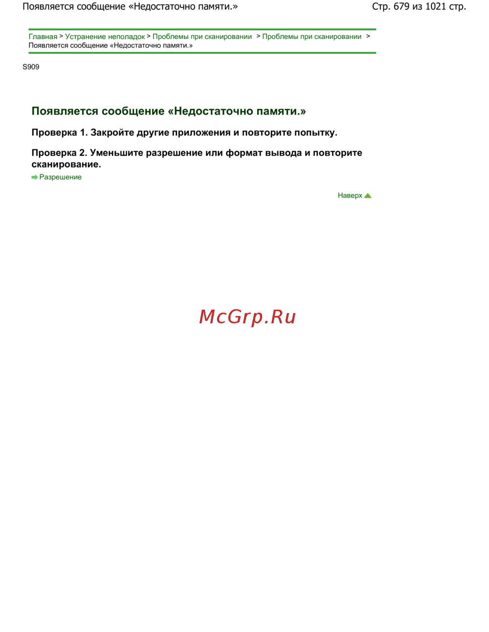 Canon Pixma MG4140 [679/1021] Появляется сообщение недостаточно памяти