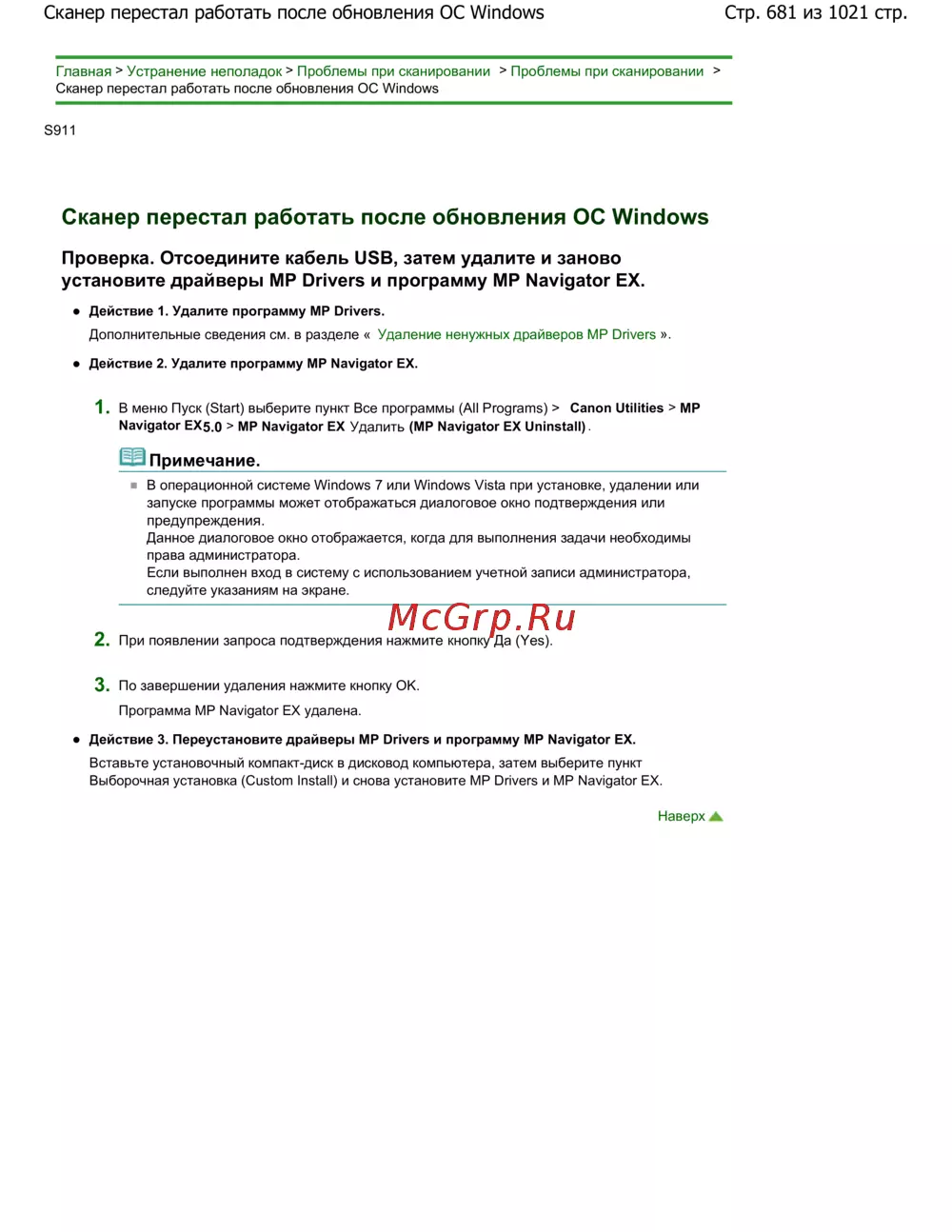 Стр. 681 из 1021 стр.Сканер перестал работать после обновления ОС Windows