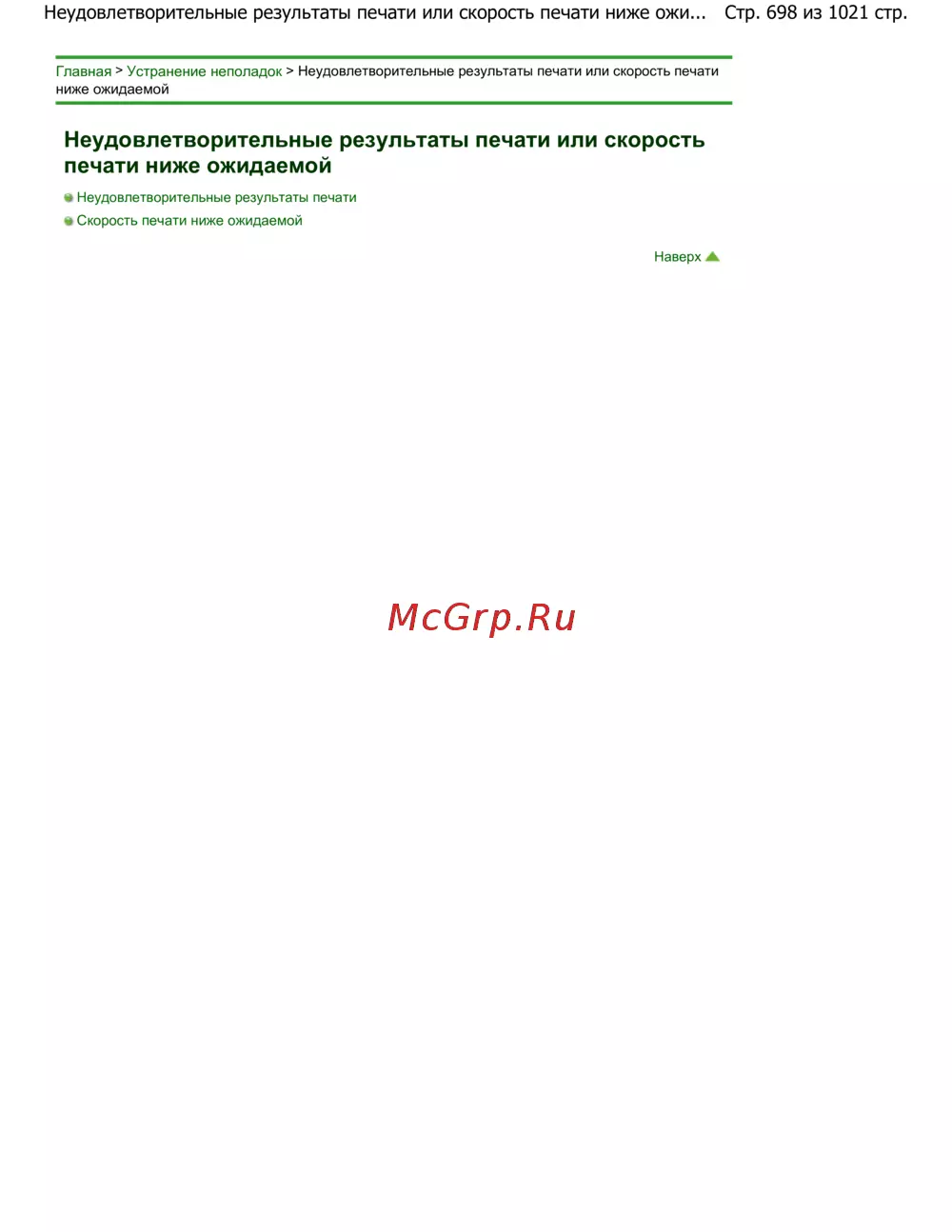 Стр. 698 из 1021 стр.Неудовлетворительные результаты печати или скорость печати ниже ожи...