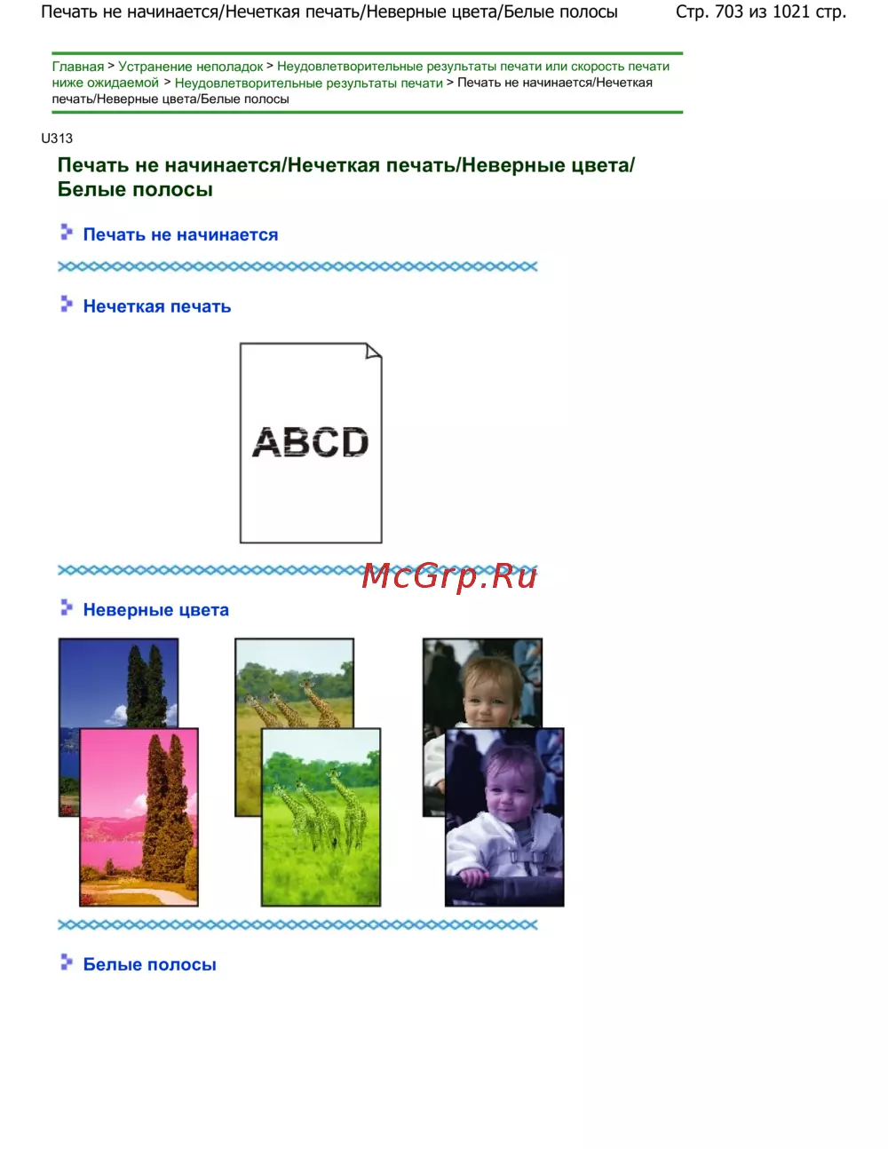 Стр. 703 из 1021 стр.Печать не начинается/Нечеткая печать/Неверные цвета/Белые полосы