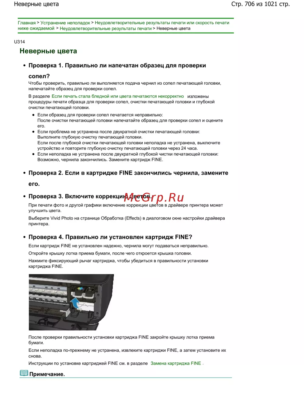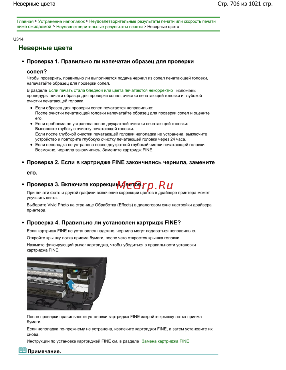 Проверка 4. Правильно ли установлен картридж FINE?