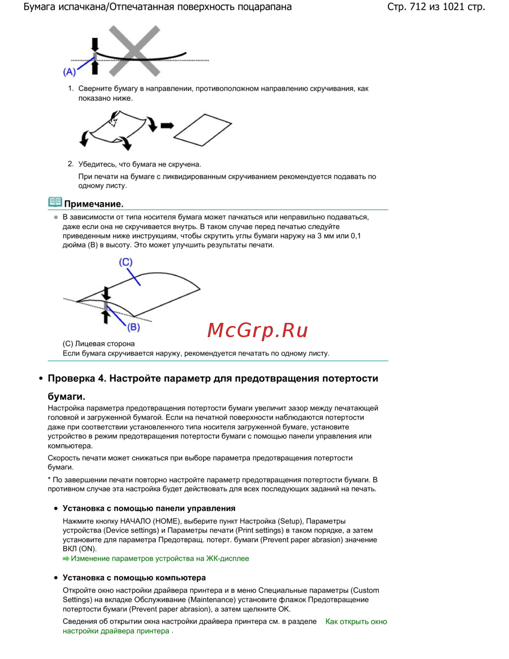 * По завершении печати повторно настройте параметр предотвращения потертости бумаги. В