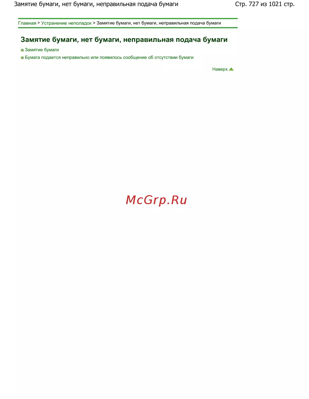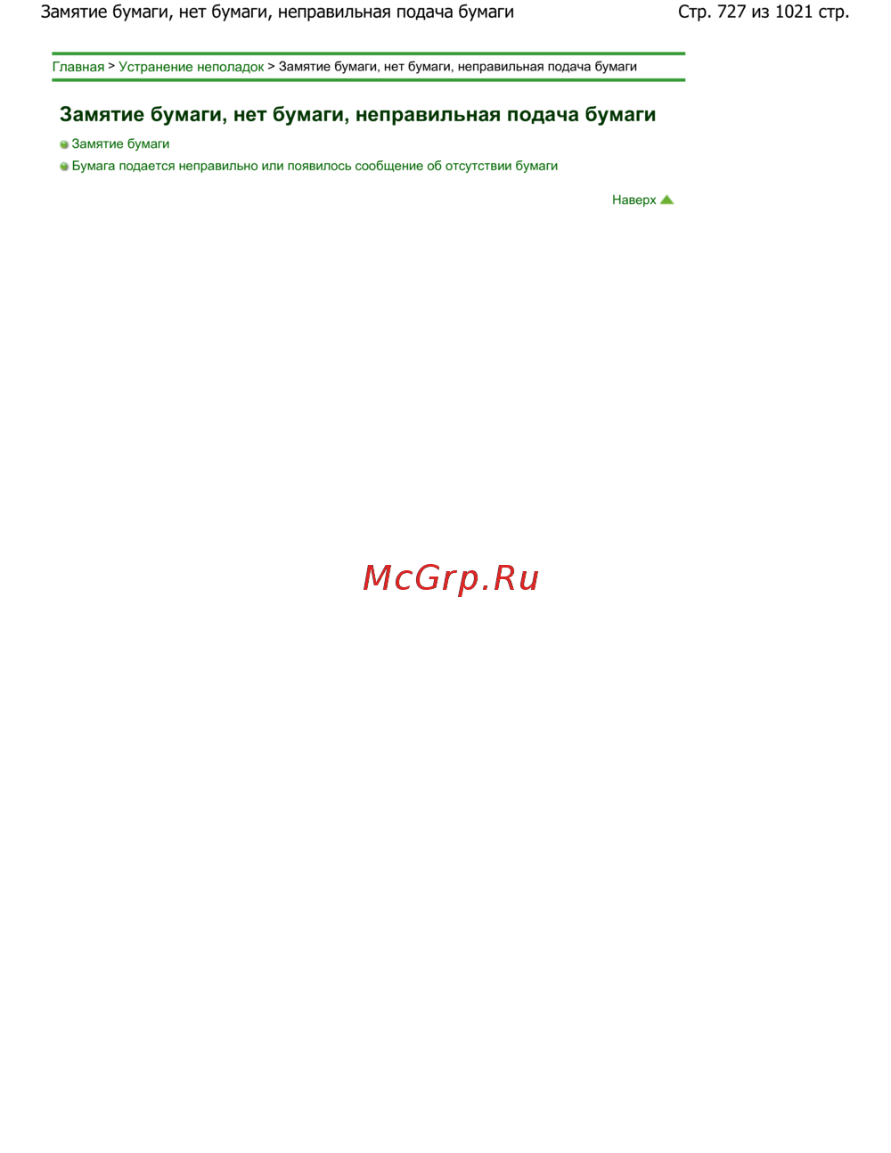Стр. 727 из 1021 стр.Замятие бумаги, нет бумаги, неправильная подача бумаги