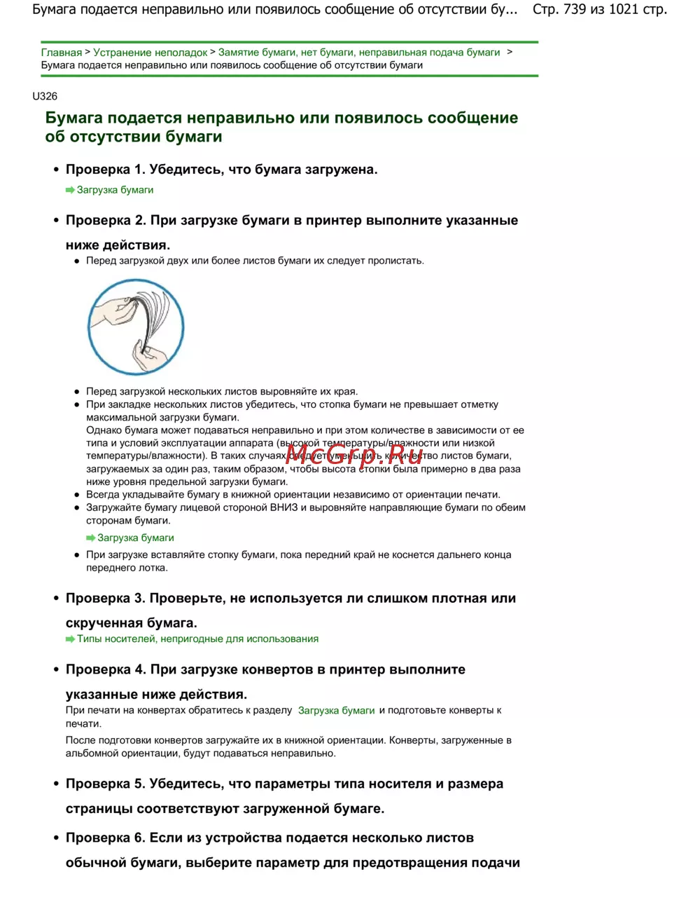 Стр. 739 из 1021 стр.Бумага подается неправильно или появилось сообщение об отсутствии бу...