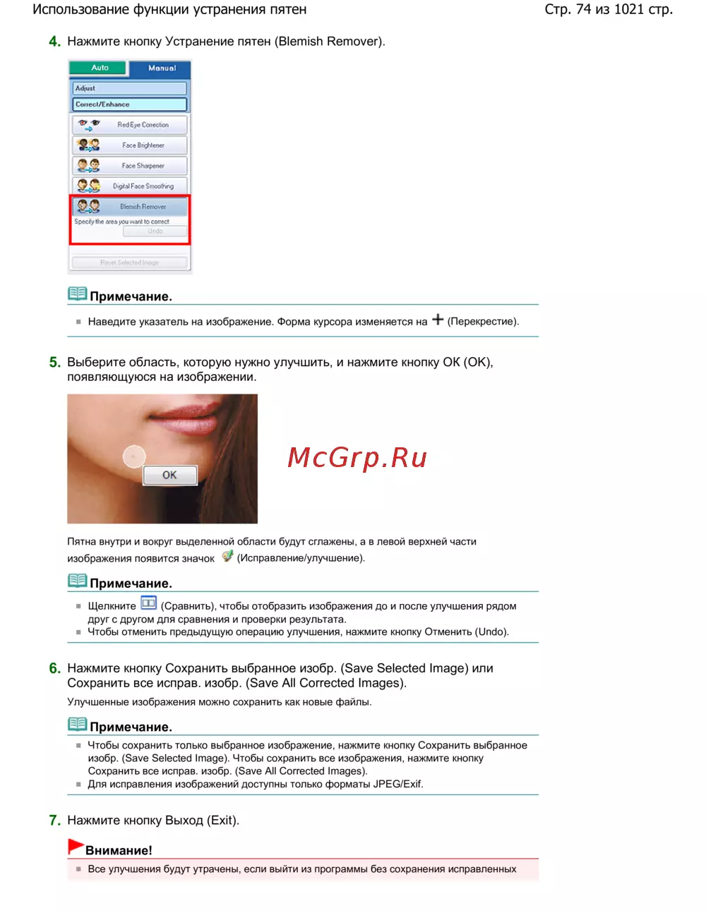 Стр. 74 из 1021 стр.Использование функции устранения пятен