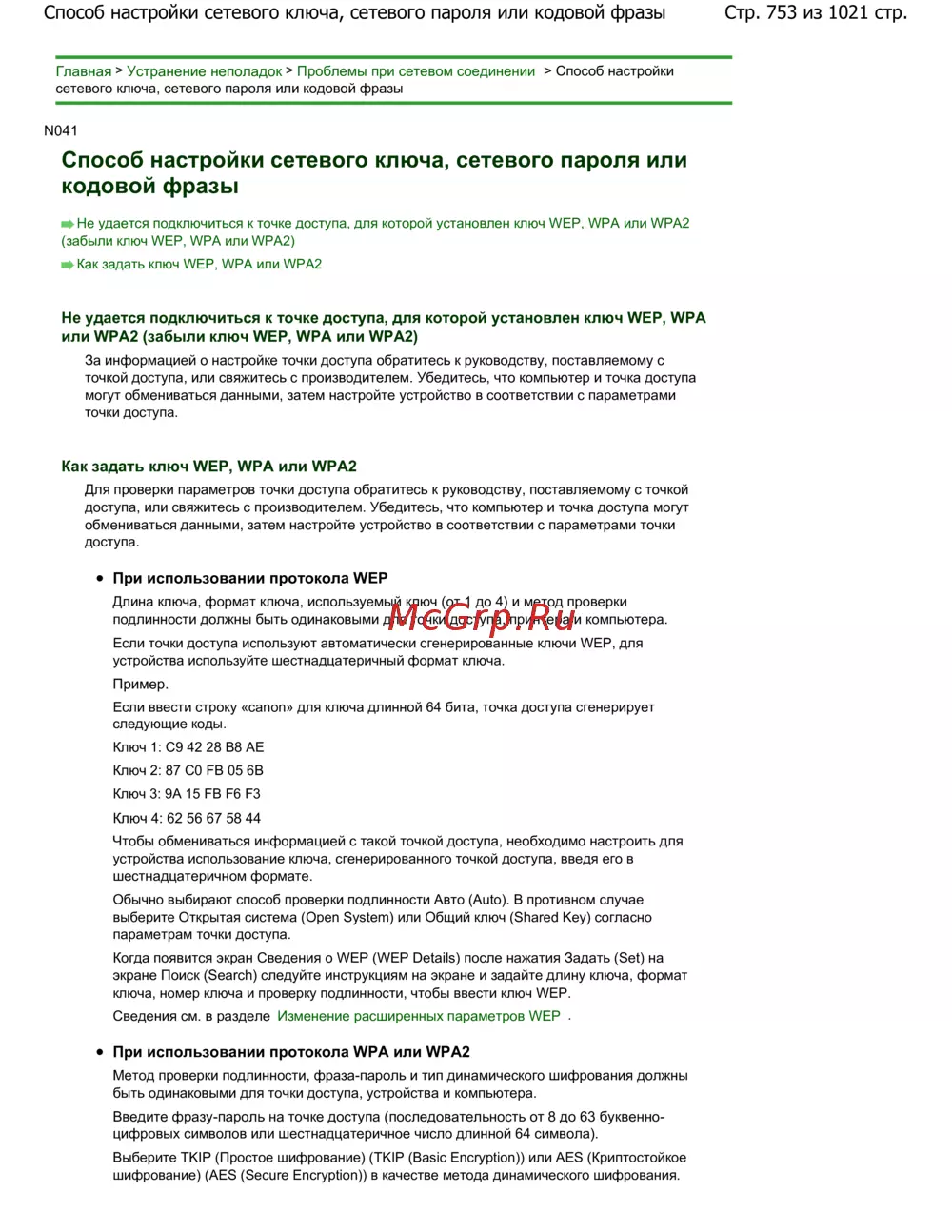 Canon Pixma MG4140 — настройка ключей WEP/WPA/WPA2: инструкция по совместимости и форматам [753/1021]