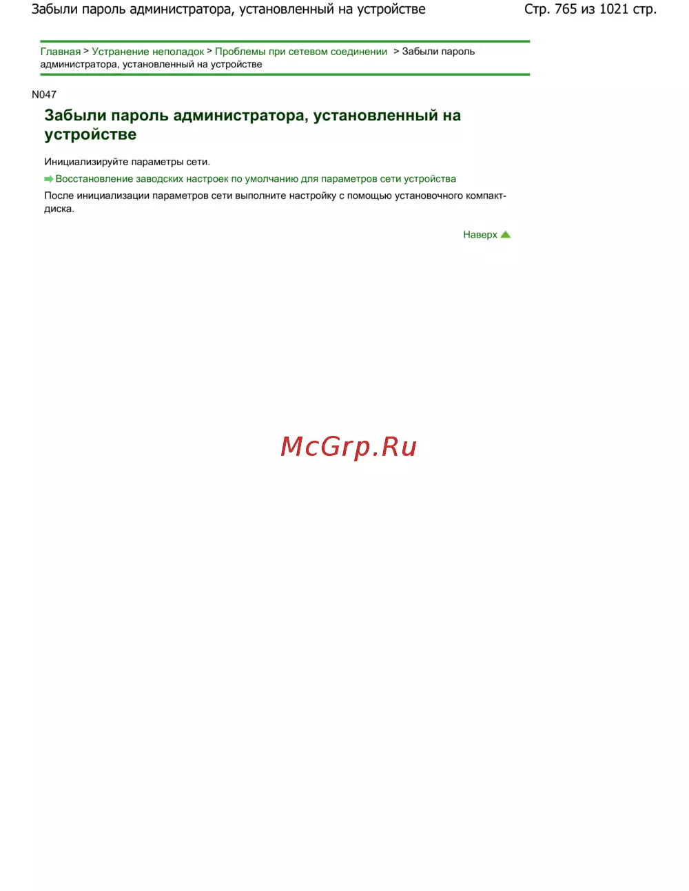 Стр. 765 из 1021 стр.Забыли пароль администратора, установленный на устройстве