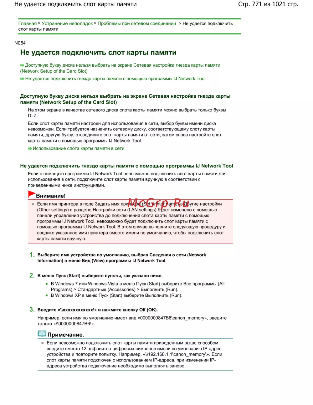 устройства и повторите попытку. Например, «\\192.168.1.1\canon_memory\». Если