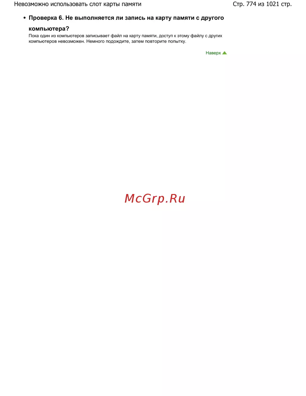 Стр. 774 из 1021 стр.Невозможно использовать слот карты памяти