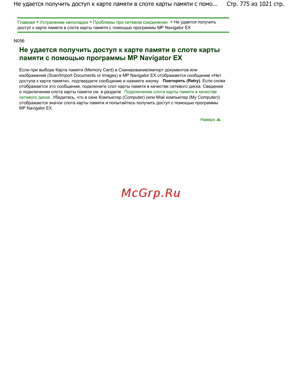 Стр. 775 из 1021 стр.Не удается получить доступ к карте памяти в слоте карты памяти с помо...