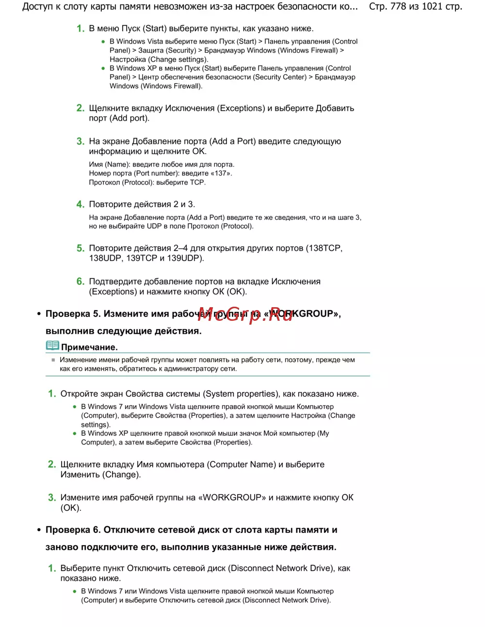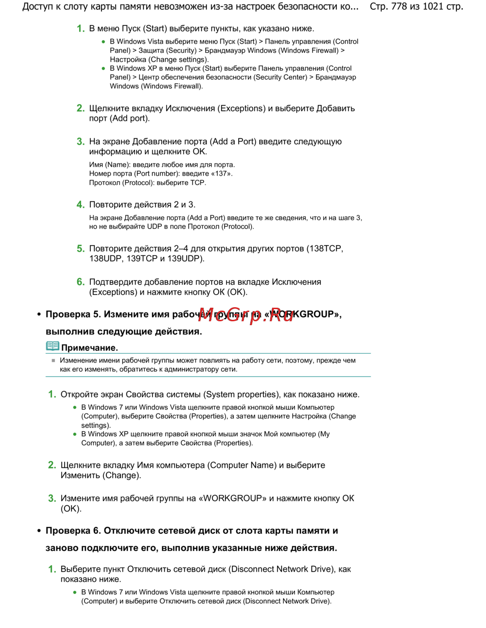 Canon Pixma MG4140 [778/1021] Стр 778 из 1021 стр доступ к слоту карты памяти невозможен из за настроек безопасности ко