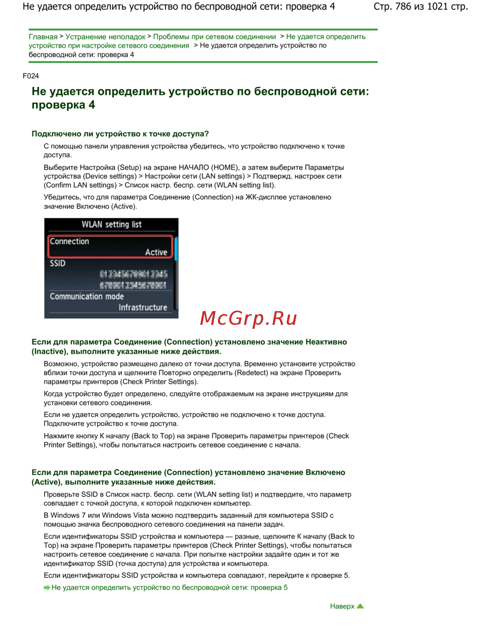 Стр. 786 из 1021 стр.Не удается определить устройство по беспроводной сети: проверка 4