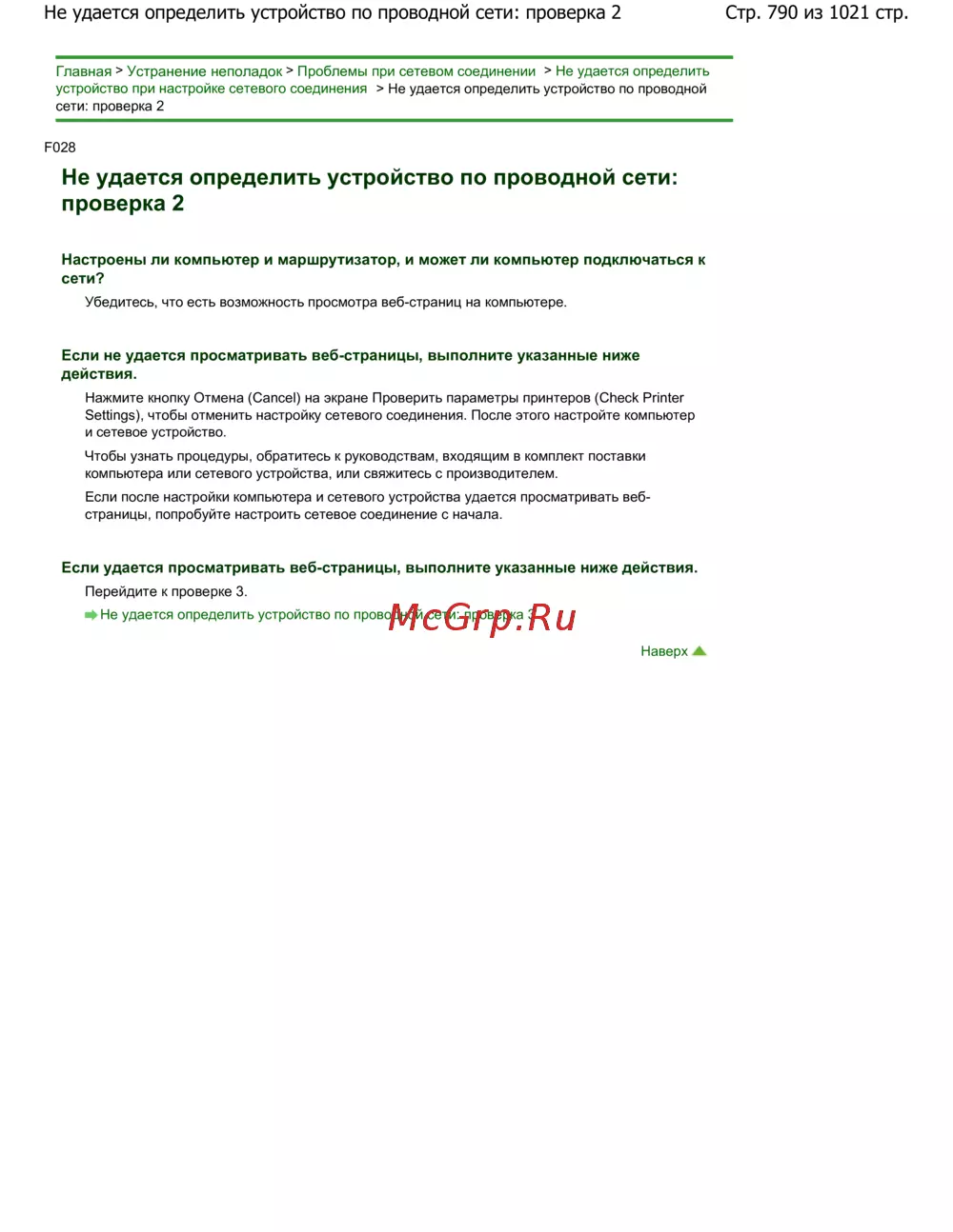 Стр. 790 из 1021 стр.Не удается определить устройство по проводной сети: проверка 2