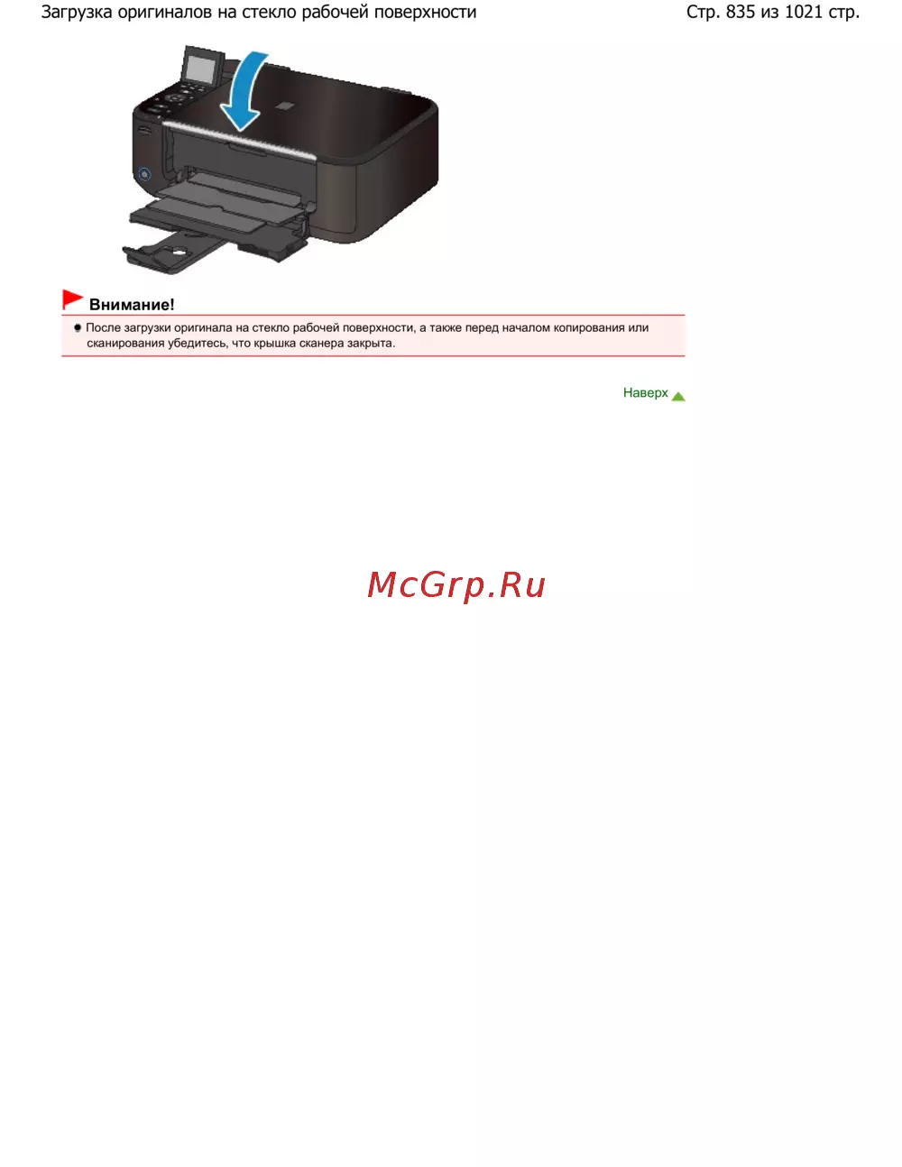 Стр. 835 из 1021 стр.Загрузка оригиналов на стекло рабочей поверхности