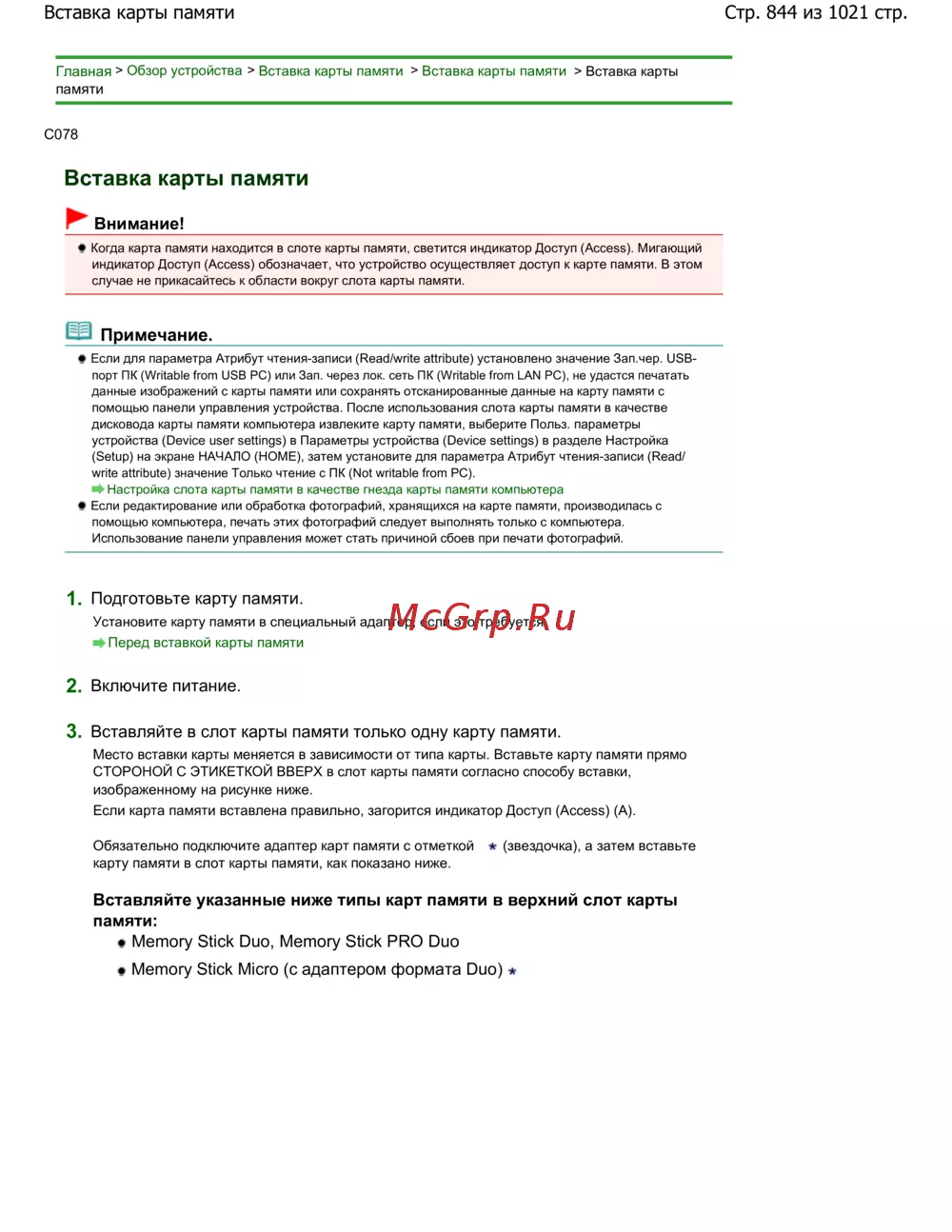 Стр. 844 из 1021 стр.Вставка карты памяти