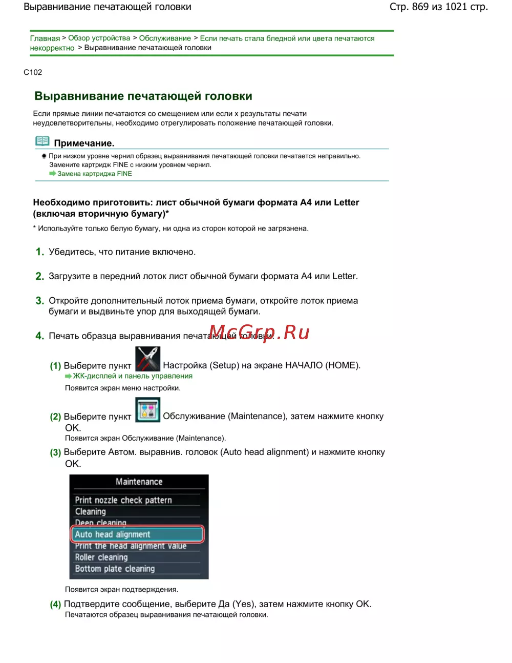 Стр. 869 из 1021 стр.Выравнивание печатающей головки