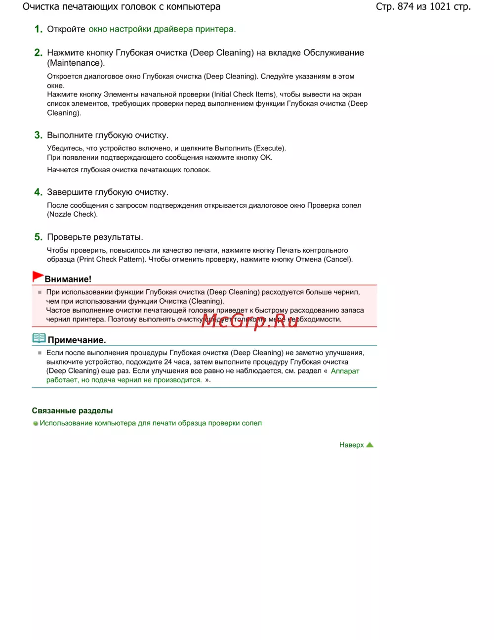 Стр. 874 из 1021 стр.Очистка печатающих головок с компьютера