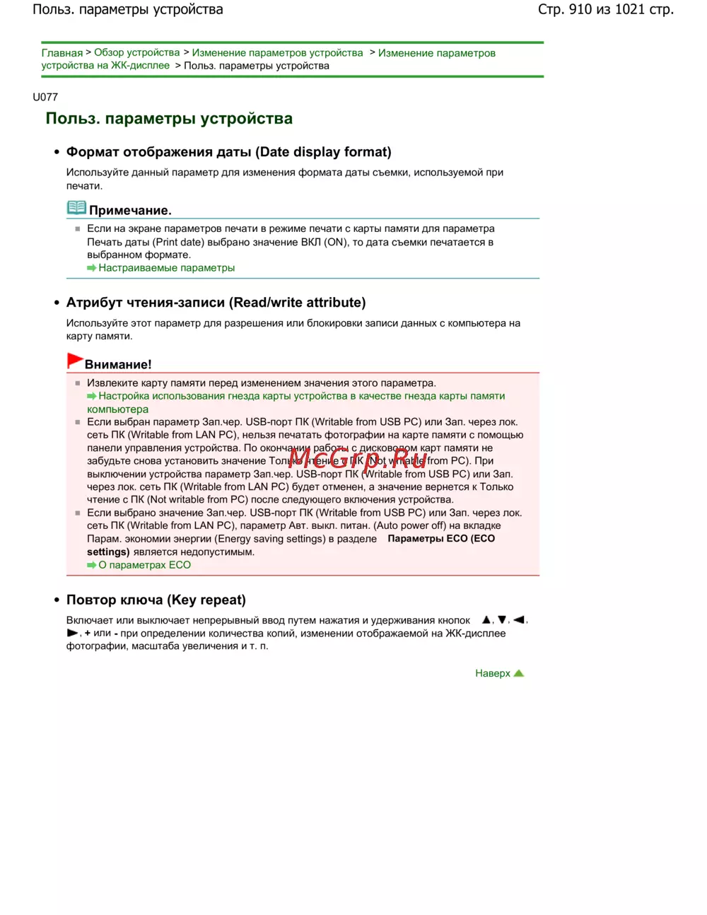 Стр. 910 из 1021 стр.Польз. параметры устройства