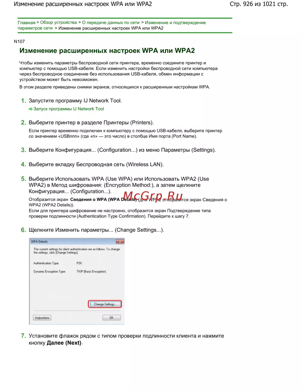Стр. 926 из 1021 стр.Изменение расширенных настроек WPA или WPA2