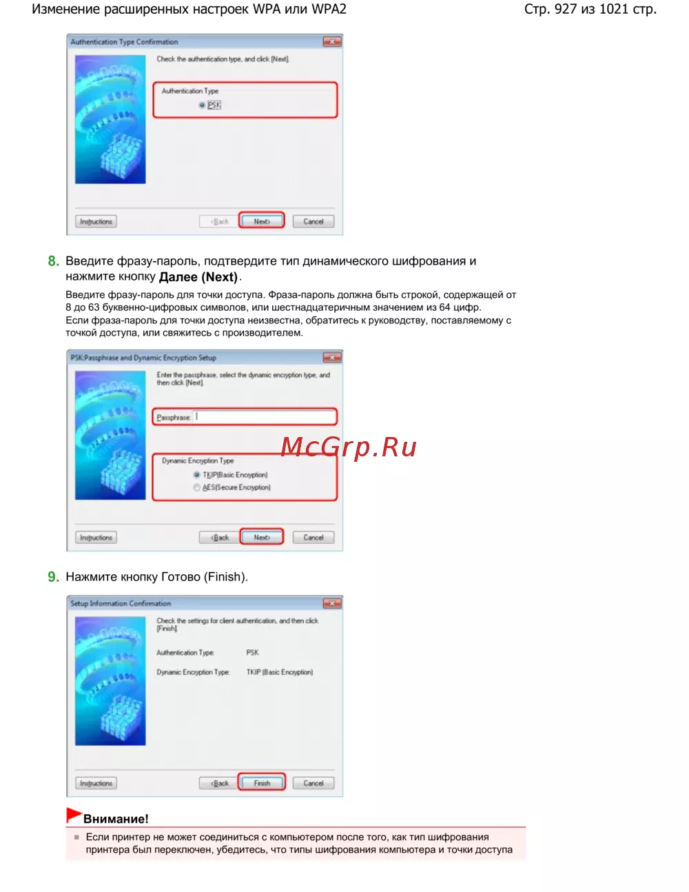 Canon Pixma MG4140 [927/1021] Стр 927 из 1021 стр изменение расширенных настроек wpa или wpa2