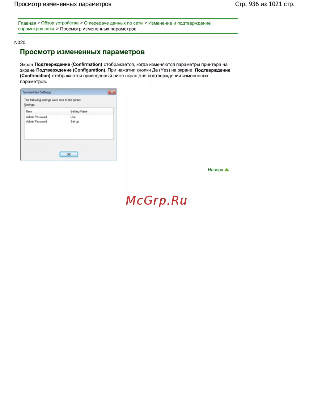 Стр. 936 из 1021 стр.Просмотр измененных параметров