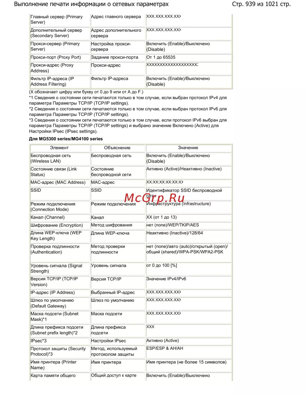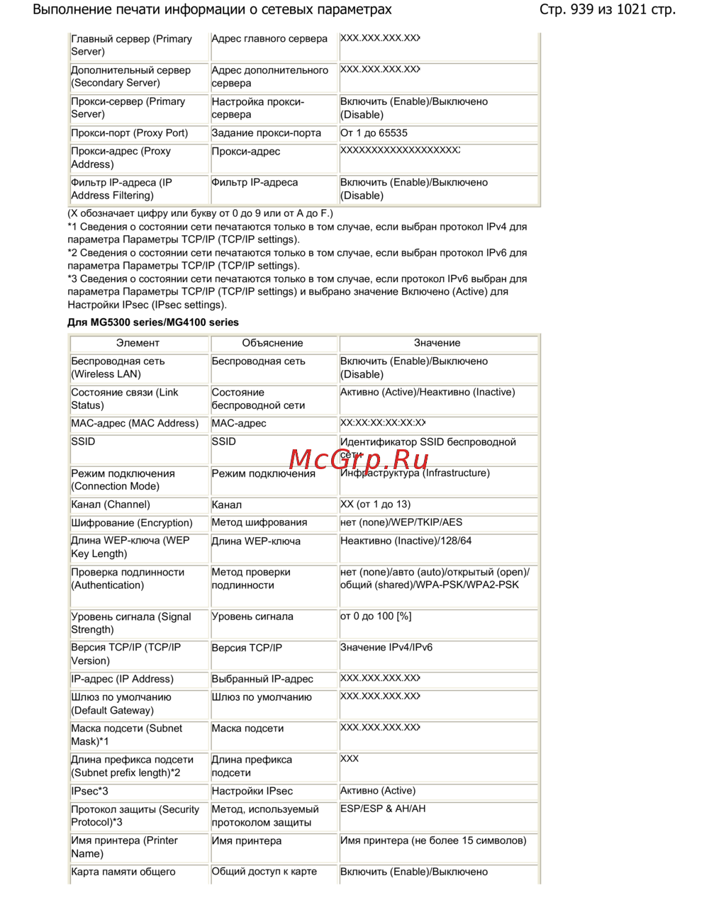 Стр. 939 из 1021 стр.Выполнение печати информации о сетевых параметрах